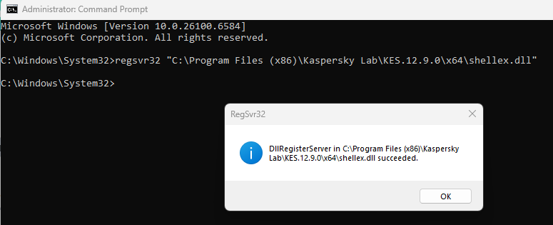 regsvr32 "C:\Program Files (x86)\Kaspersky Lab\KES.%version%\x64\shellex.dll" regsvr32 "C:\Program Files (x86)\Kaspersky Lab\KES.%version%\shellex.dll"