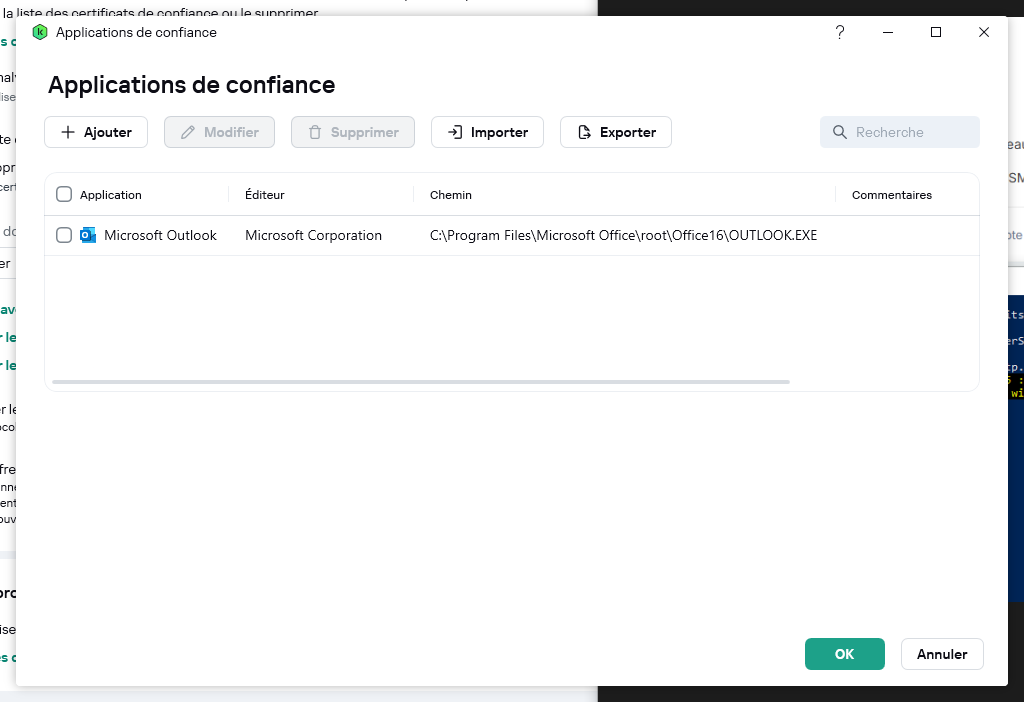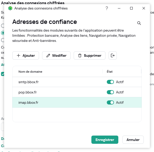 16. Bonjour Berny, Merci pour ta réponse. :D J'ai renseigné le SMTP, POP et IMAP de BBOX.FR dans Analyse des connexions chiffrées sur Kaspersky Plus 21.22.7.466(c) , puis j'ai rebooté mon ordi et j'ai refait un test d'envoi de mail sur Outlook 2021, le problème persiste. :(