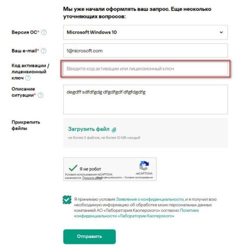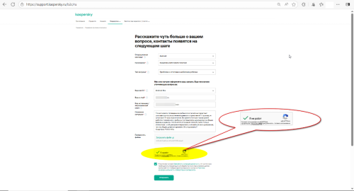 Hello @andrew75, Having an Activation code/License code is not required in the request but the Activation code/License code *field* must have something in it for the template to successfully complete & the Captcha to work. Hello @sol4rinn, Sorry, we cannot speak/write Russian. (You) don't need to submit *another* request, INC000017892763 is already in Kaspersky's system, please wait patiently, support will contact you. Do not submit -> only test Captcha with X and OR the Activation code/License code filled in in the template - go to (your) MyKaspersky account, Subscription tab & *copy* the Activation code/License code then *paste* the code to the template, complete the remaining fields, does the Captcha work? IF the Captcha does *not* work after you've filled in the Activation code/License code *field* - tell Support, when they contact (you) about the *actual* KSK issue: Thank you🙏 Flood🐳+🐋 -