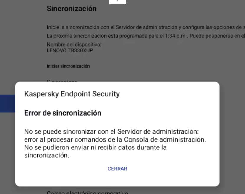 Hello, I am having trouble getting an Android tablet to sync and appear on the Kaspersky Cloud dashboard. A message appears stating: Unable to synchronize with the management server: error processing commands from the Management Console. The strange thing is that it shows the old name, which has been deleted from the console and from the “Show marked for deletion” option. Has anyone else had this problem? I've tried everything, even factory resetting the tablet.