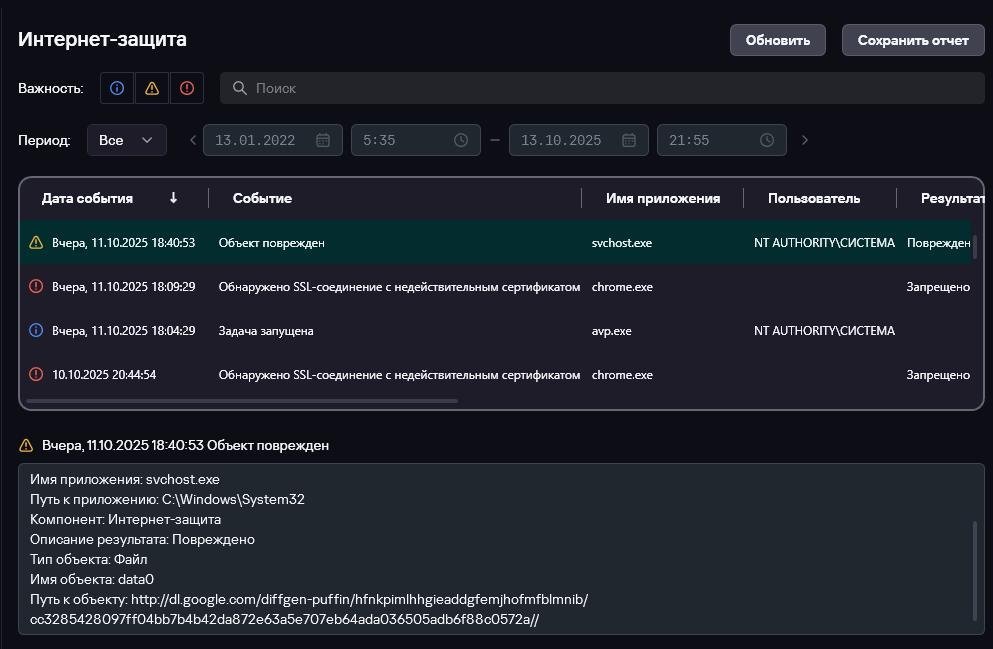 Добрый день Словил ратник на пк, полностью снёс винду и установил новую, скачал kaspersky free и несколько раз запускал полную проверку, ничего не нашло В отчетах интернет защиты появились такие записи: Событие: Объект поврежден Пользователь: NT AUTHORITY\СИСТЕМА Тип пользователя: Инициатор Имя приложения: svchost.exe Путь к приложению: C:\Windows\System32 Компонент: Интернет-защита Описание результата: Повреждено Тип объекта: Файл Имя объекта: data0 Путь к объекту: http://dl.google.com/diffgen-puffin/kiabhabjdbkjdpjbpigfodbdjmbglcoo/576b942245c712f8103348d8b5f9e7c450e48603f5456b10bcce51de0c5783ad// И Событие: Объект поврежден Пользователь: NT AUTHORITY\СИСТЕМА Тип пользователя: Инициатор Имя приложения: svchost.exe Путь к приложению: C:\Windows\System32 Компонент: Интернет-защита Описание результата: Повреждено Тип объекта: Файл Имя объекта: data0 Путь к объекту: http://dl.google.com/diffgen-puffin/gcmjkmgdlgnkkcocmoeiminaijmmjnii/2a6a6ad9a1731da6fdb24fe4825d0130a7bfaac199b6d56bf5c16929bf3ce813// Что вообще значат эти записи?