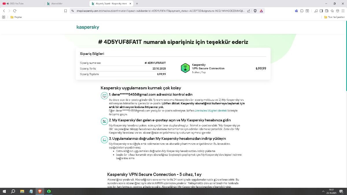 vpn satın aldım 1 aylık 99.99 tl e lisansım bitmişti tekrar aldım karttan para da çekti her şey okey ama lisans yenılenmedı kaldık saksağan gibi ortada para gitti lisans yok
