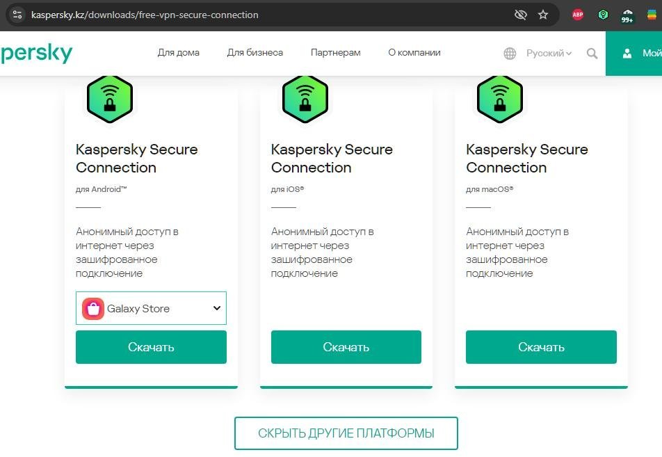аааа, так и надо говорить, а то вызывайте телепата, пусть расшифрует - о чем речь. да, для России нет, а например для Казахстана есть а в личном кабинете, у вас лицензия, которая активирует Kaspersky Secure Connection прикреплена? если да - то там можно скачать -