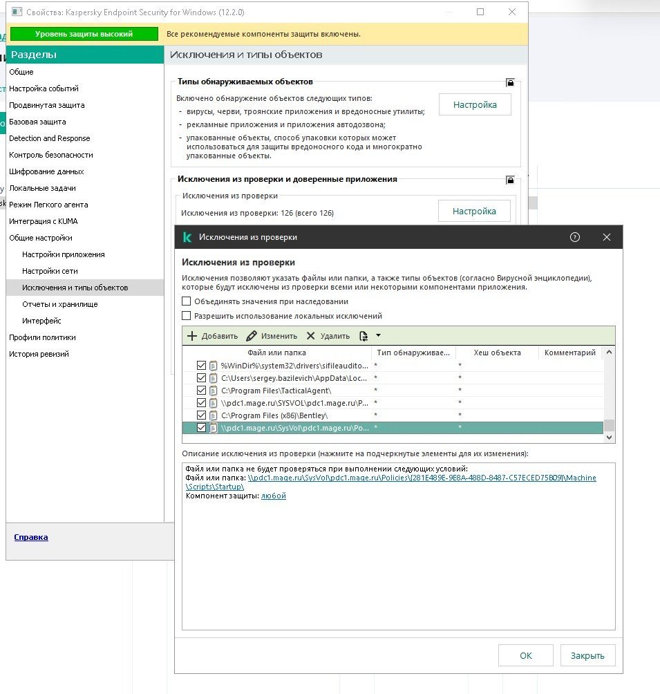 Приветствую! В настройках политики KSC , В общих настройках -> Исключения и типы объектов -> Исключения из проверки добавлена исключение папка Но у пользоей все равно высвечивается - что в ней есть потенциально опасный скрипт. Как можно добавить в исключение этот файл?