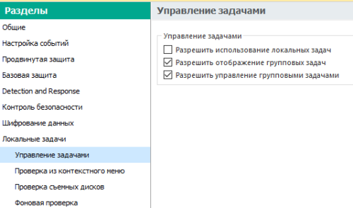 Отображение выполняемой задачиtyazhelnikov replied to B2b-corp's topic in Kaspersky Endpoint Security для бизнеса День добрый. Все зависит от типа задачи. Посмотрите настройки в политике здесь. (при такой настройке на клиенте видны будут только групповые задачи)