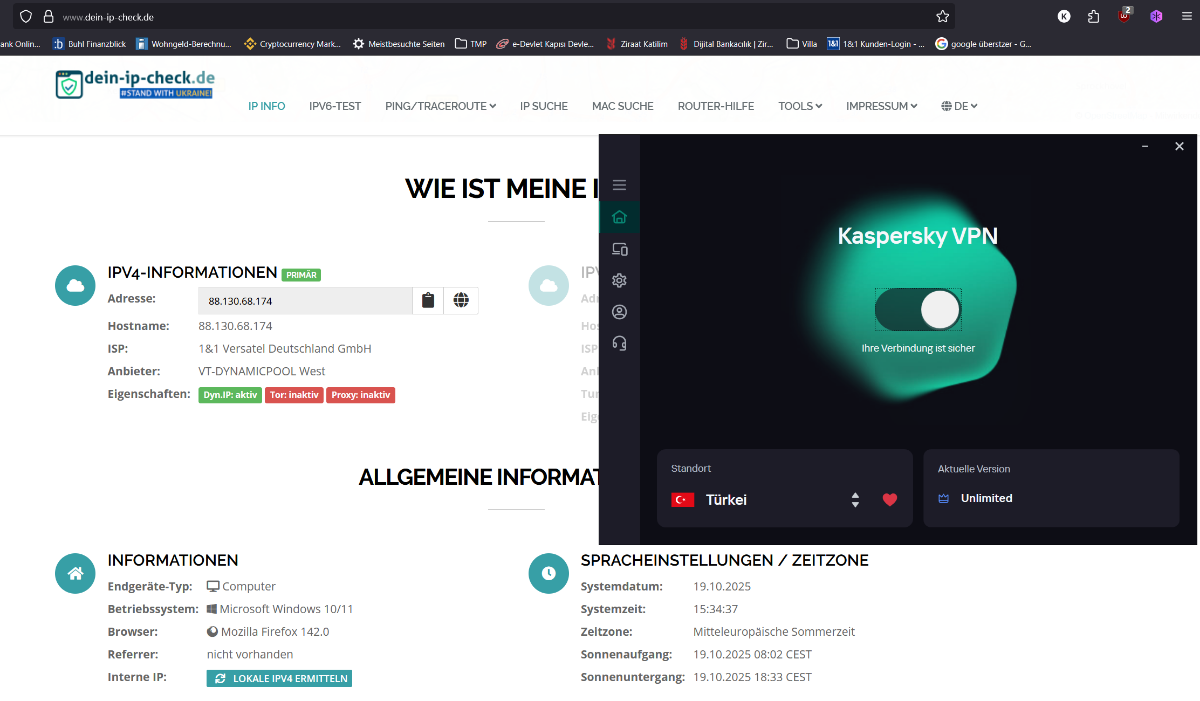 Hallo, Habe auch mit Firefox und mit der Webseite "dein-ip-check.de" überprüft, das ist das Ergebnis: -