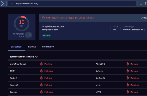 aphrodite started following False positive: aliexpress.ru.com flagged as Botnet C&C / Malware