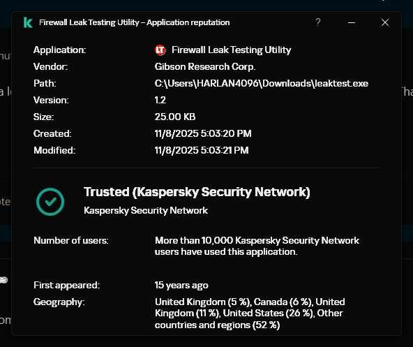 Welcome to Kaspersky Community. The answer is very simple: Your Kaspersky considers that file as Trusted, so any traffic will be allowed. Move that file in Your Intrusion Prevention -> Manage Applications, to High Restricted, and try again.- 1 reply