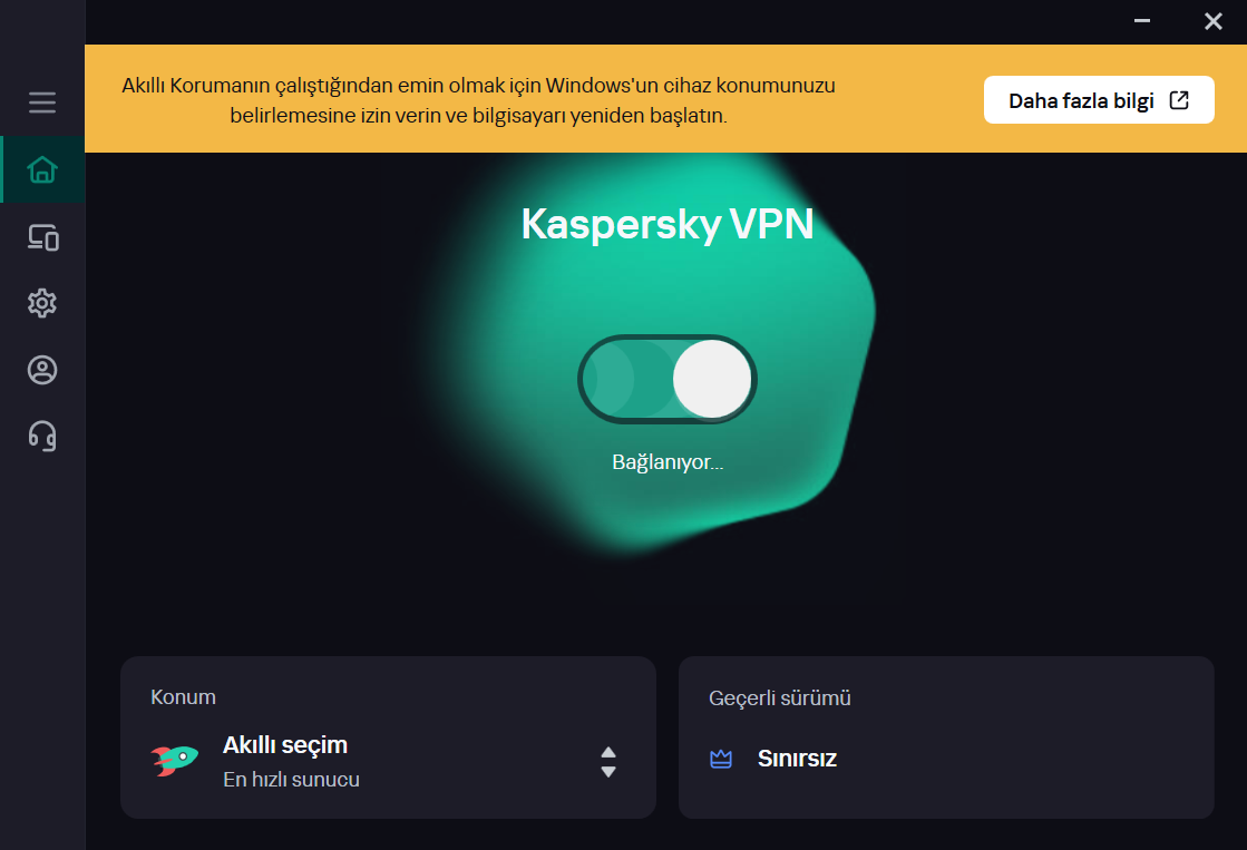 kaspersky vpnye bağlanmaya çalıştığımda "bağlanıyor.." kısmında kalıyor