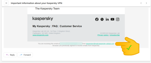 Saben si este correo es legítimo de kaspersky? Me llegó de ahí el aviso sobre los problemas de la VPN y un enlace para actualización. -