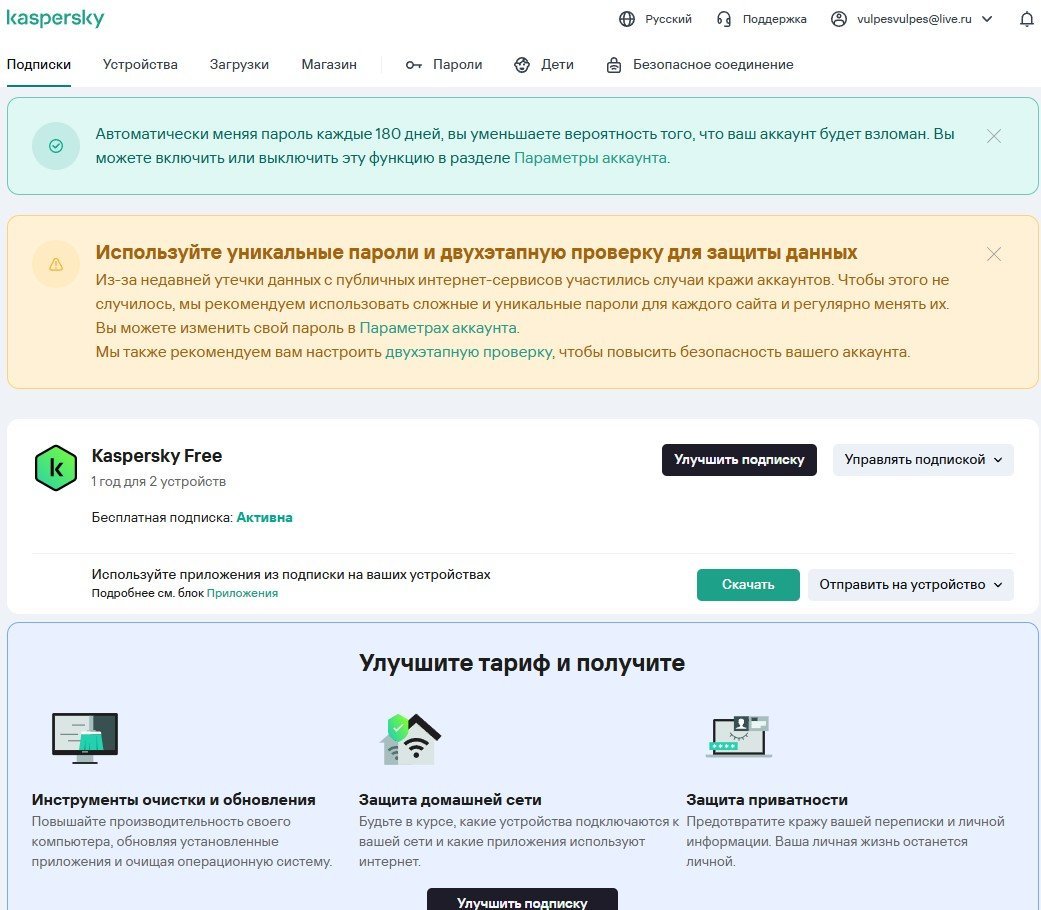 У меня давно подписка и ещё полгода действует. Начала писать программа, что нужно обновление. Загрузил - сколько-то поработало (полдня где-то) - а теперь началось, что "временно недоступно". То доступно было - а теперь недоступно.