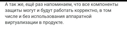 19. Так пишите в ТП, что он у Вас падает, пусть правят, чтобы не падал, ибо падать оно не должно ни при каких условиях. Ну правильно. В W10 оно было, но включать нужно было ручками, т.е. добровольно, да и знать куда полезть как бы нужно было, чтобы включить. Тот, кто включал получал ту же несовместимость с антивирусом ЛК, но у него и мысли не было бухтеть на эту тему - сам же включил, сам захотел. А в W11 его включили уже по-умолчанию, отсюда и видимость проблемы. Т.е. MS отлично знала и понимал, что с данной опцией совместимость их ОС с прикладным ПО будет ниже, производительность - тоже ниже, но решили таки приударить за безопасностью - право такое они имеют, чего уж - это их ОС, и их проблемы, которые им же и решать в их же техподдержке. 🙂 А это уже другой вопрос, чуть раньше я писал: не можешь работать - предложи решение. Однако не сделали... хотя там и делать особо нечего - это просто стандартное уведомление, навроде рекламного: "купите наши паровозы антивирусы в мае, по скидке".