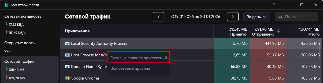 Прошу помощи в решении проблемы с Kaspersky Endpoint Security. При попытке настроить сетевые правила для конкретных приложений кнопка настройки остаётся неактивной. Управление антивирусом выполняется через веб‑панель, однако в её интерфейсе нет разделов или опций, позволяющих контролировать сетевую активность отдельных приложений. Какие есть способы обойти это ограничение или где искать нужные настройки? -