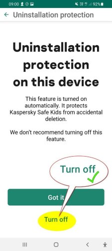 Hello @chavs_uk, You're most welcome! The .apk makes no difference. KSK is no longer distributed via GooglePlayStore, please read: How to download Kaspersky apps on Android and iOS, Kaspersky Safe Kids. IF our original solution had worked we'd have provided it & IF we had a 'faster' solution - we'd have posted it, sadly, on this occasion, despite hours of trying we were unable to make any progress - it really should be a simple process. We've just revisited it, spent another two hours, it's hopeless... We can & have turned OFF Uninstallation protection - requires password to be entered We can & have turned OFF the app - requires password to be entered but that's it, entering the password to initiate Uninstall the app does diddly-squat, it's freakin bizarre. IF (you) want KSK OFF (your) phone please contact Kaspersky Customer Service. BTW, it takes no time to log a request & get it into the Kaspersky system, the sooner it's in there the sooner (you'll) get service. Please share the outcome with the Community, when it's available? Thank you🙏 Flood🐳+🐋 -