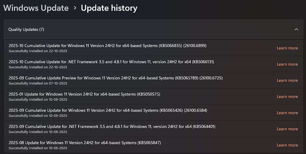yes i understand it now a deeper analyis of the cause of issue is required to understand the root problem triggering this BSOD to occur. i have the kaspersky internet security AV on my old family laptop which runs windows 10 without any dedicated GPU and therefore i assume this is not affecting it but since most devices run windows 11 along with dedicated NVIDIA GPUs , this driver conflict might be a problem faced by multiple kaspersky users due to the same core security components being used for both paid and free users , which i wanted to bring it to notice for kaspersky team to go through it and analyse and fix this bug affecting its customers.🙂 and yes regarding to the updates installed , i have not enabled windows insider program or opted into latest updates as soon as they get rolled out. i have attached the recent updates installed which was after re-installing my windows 11 nearly a month ago to check if it would solve this issue As mentioned cumulative update preview is installed and not the preview version as seen in the screenshot provided -