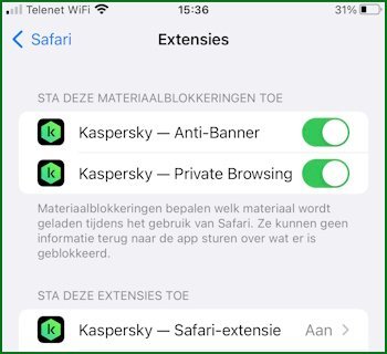3. @pok Welcome. This could have been a known temporary license problem 🤔 ? Please try this : 1) iPhone Settings → Safari → Extentions (Configuration takes some seconds , please don't cancel !) 2) Iphone Settings → Kaspersky → Home