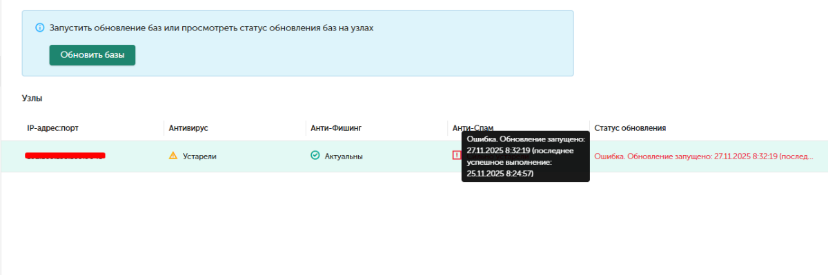Здравствуйте. Помогите разобраться, базы не обновляются, не могу сообразить в чем проблема? Пробовал с небезапасного соединения, результат тот же. Перезагрузка так же не помогла.