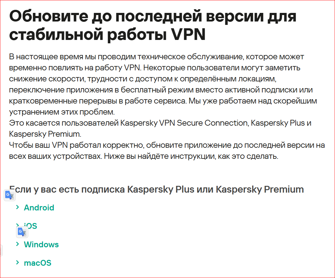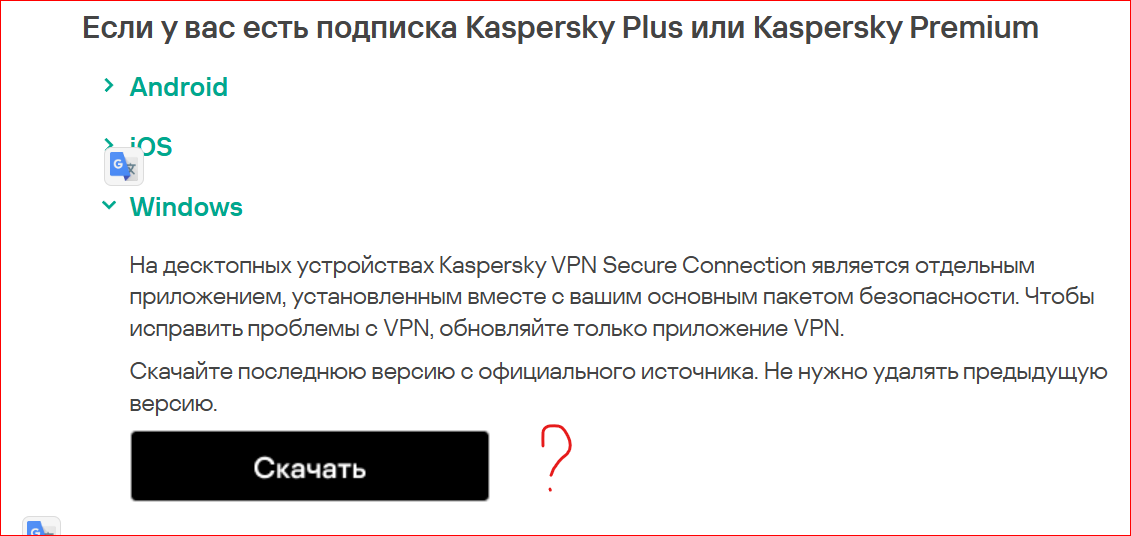 Добрый день! Действительно удивило само это "красное" предупреждение-"пугалка", которое заставляет скачать что-то "отдельно" для VPN... Почему нельзя "вложить" это "обновление" VPN в обновление и обновить автоматом "по воздуху"? Кстати, на My Kaspersky и в Личном кабинете этого нет. -