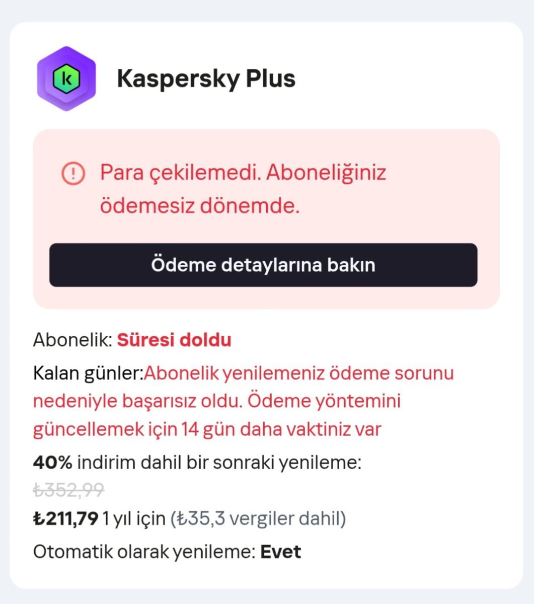 Bugün lisansımı sona erdi ve bugüne kadar ödemeyi sorun yaşıyorum napacan artık bilemiyorum çoğu kartlar denedim olmadı destekten de gelen dönüş yok, talep açıyorum kapanıyor. Bana yardımcı olabilecek net bir çözüm var mı?