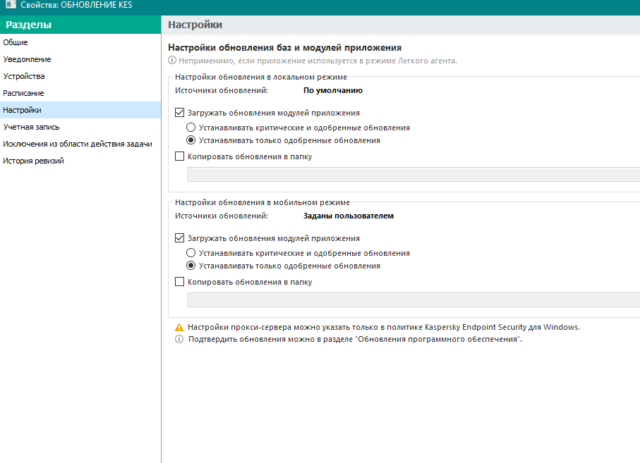 Самое прикольное, что обновление в центре до 12.11 вообще само по себе появилось в списке только вот сегодня. На тот период, когда я разбирался, вот на скриншоте видно, его и не было. Оно появилось совсем там, где обновление программного обеспечения, только там. И там я поставил. Но на первом скриншоте это видно. А на втором скриншоте видно чётко, что в задачах обновления стоит устанавливать только одобренное обновление. То есть, как бы, ну, такой стандартик, который не предполагает обновлять версии автоматически. Плюс в агенте у меня снята эта галочка. Если честно, тогда уже совсем ничего не понимаю. Ничего страшного, в конце концов, всё установилось. У меня не так много машин в КСЦ, около сотни. И в итоге только сеть потеряли две машины, и одна, странно, вместо перезагрузки выключилась. Вот. А у коллеги, у которого порядка шести тысяч машин, у него там, короче, куча проблем. Вот как-то так. -