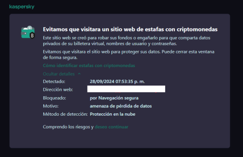 Hello guys, I am the owner of a website that is being blocked by Kaspersky Safe Browsing feature with the following message: "We prevented you from visiting a cryptocurrency scam website. This website was set up to steal your funds or trick you into sharing private virtual wallet data, usernames and passwords. We prevented you from visiting the website to protect your data. You can safely close this window. How to identify cryptocurrency scams. Detected: 09/28/2024 07:53:35 p.m. Blocked: By Safe Browsing Reason: threat of data loss Detection method: Cloud protection" I am confident this is not a certificate issue, and my website is safe. This is the only antivirus flagging the website like this, and I believe the issue might be due to a past feature where users could log in using a cryptocurrency wallet. That feature has since been removed, but it seems the website may have been flagged as dangerous during that period. Could you please advise me on how to resolve this issue and remove the block, if possible? Thank you for your assistance! Best regards, -