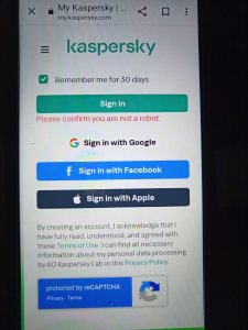 Hello Kas Today I attempted to login to my.kaspersky account on my PC, after finding I couldn't remove an application. So I attempted the PC Clean in my Total Kaspersky Application. I was then requested a password, so I used what has been installed via my browser cookies. I have Google Chrome, Windows Edge and Firefox browsers. I found that none of the browser's will open my Kaspersky account, so I reset my password which seemed to go well, using the Kaspersky Virtual Keyboard until I tried to login again, but I cannot get access on my PC, but I can login on my phone, just no where else. Am also being asked for a 'captcha', but no captcha is being produced. Why am I being asked for a 'captcha' that's not being produced, as shown in my attached picture.