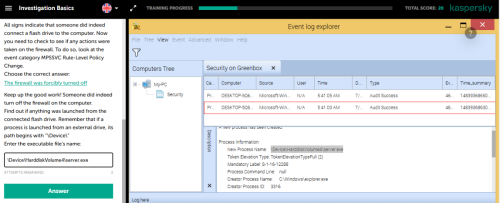 STOCKED IN MY LEARNING IN THE KASPERSKY CLOUD PAIED LESSIONOputa Friday posted a topic in Kaspersky Endpoint Security Cloud here is the question: please I need support I'm currently stuck at question 3 in my learning process of basic investigation which is a cause in the Kaspersky Cloud Pro I purchased I have solved the required question as expected. I arrived at supposedly the correct answer but the system refuses to accept my answer now I cannot further my learning for over 3 days now please I need the correct answer that will solve this problem here is the expected URL: \Device\HarddiskVolume4\server.exe but the system is not accepting it. please help me. Find out if anything was launched from the connected flash drive. Remember that if a process is launched from an external drive, its path begins with “\Device\” Enter the executable file's name: