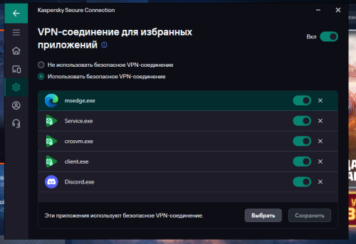 Kaspersky Secure Connection включается и выключается сам по себе