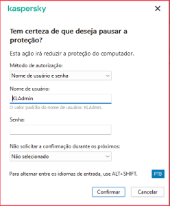 Kaspersky Endpoint Security bug na Pausar/Reiniciar a proteção