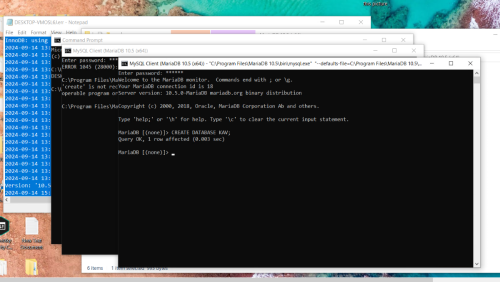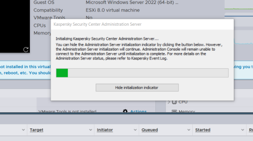 I followed this instructions to link KSC and MariaDB, which are on separate machines: https://support.kaspersky.com/ksc/14.2/210277. However, it didn't work. I've attached some screenshots, an error sql file, and an ini.sql file. I give the instance name as the Mariadb server's IP address, create a database named "KAV" in Mariadb, try to connect, and after the installation of KSC was completed, I encounter the "Hide initialization indicator" loop, which keeps running while I wait for hours. I'm not sure why KSC isn't connecting to Mariadb; Please share documentation that explains how to connect KSC to one machine and Mariadb to another? -
