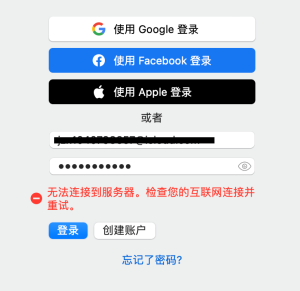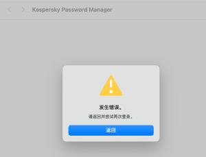 存在多个问题: 1、点击“使用Google登陆”并点击“转到浏览器”,无任何响应。 2、点击“使用Apple登陆”并认证后,显示“发生错误。”“请返回并尝试再次登录。” 3、使用卡巴斯基账号密码登陆,显示“无法连接到服务器。检查您的互联网连接并重试。”