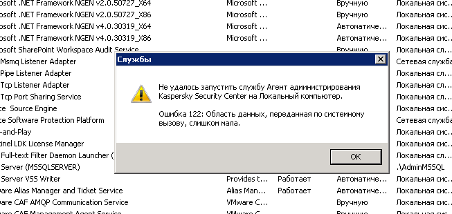 Агент администрирования KSC - область данных переданная по системному вызову слишком мала.