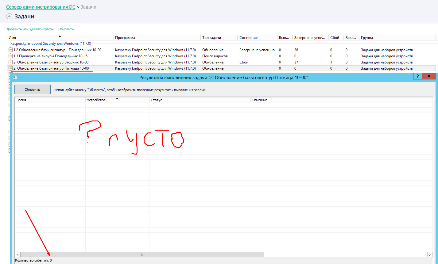 Задачи не отрабатываются в Kaspersky Security Center 13.2
