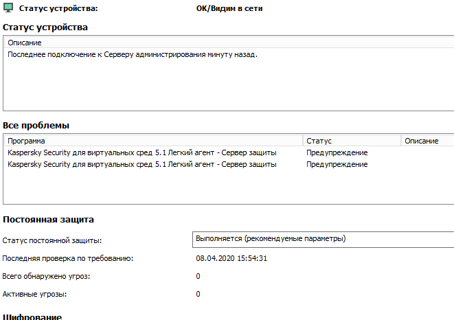Защита сервера (SVM) Желтый значок Ошибка - нет подключения к серверу интеграции