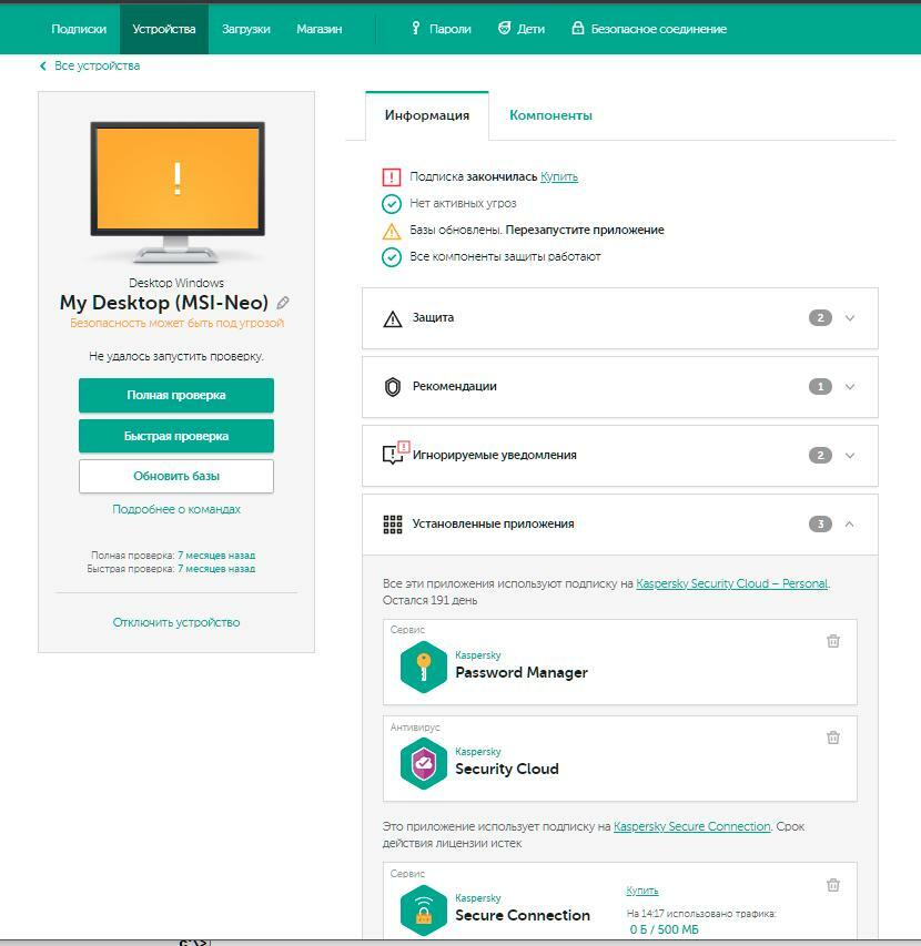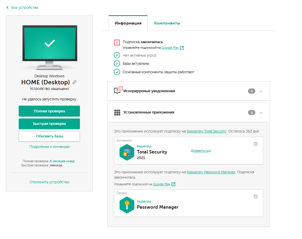 Лицензия Kaspersky Total Secutity и Kaspersky Password manager Ошибка