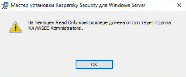 На текущем Read Only контроллере домена отсутствует группа 'KAVWSEE Administrators'