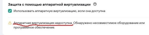 В том то и дело что включённая в биосе аппаратная виртуализация,