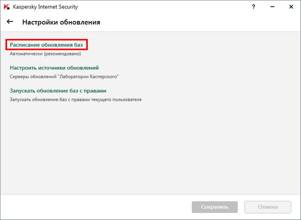 Вопрос как установить в одно время в сутки обновления базы данных в KIS,к примеру каждый день в 12.00,так как при обновлении возникают проблеммы с интернетом,львинную долю трафика поглащает KIS.