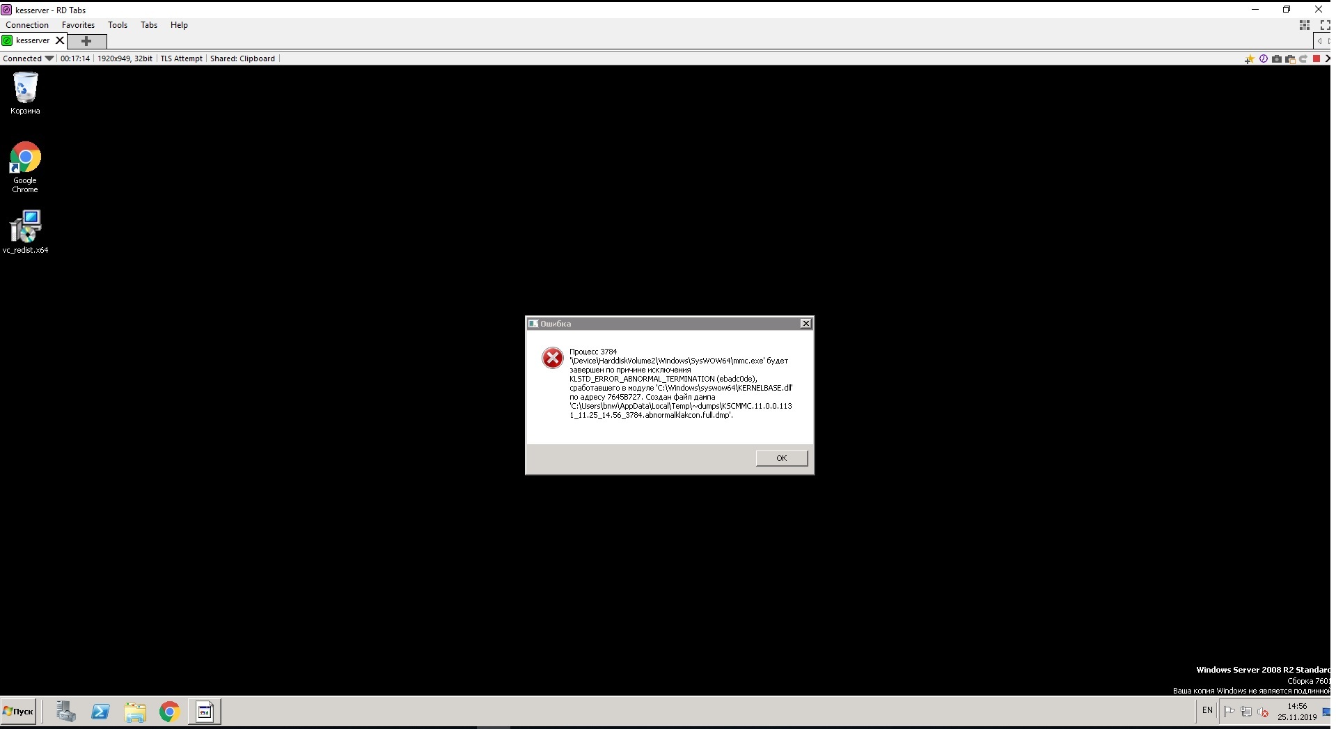 Приветствую. Возникает 2 ошибки при закрытии консоли управления KSC 11
