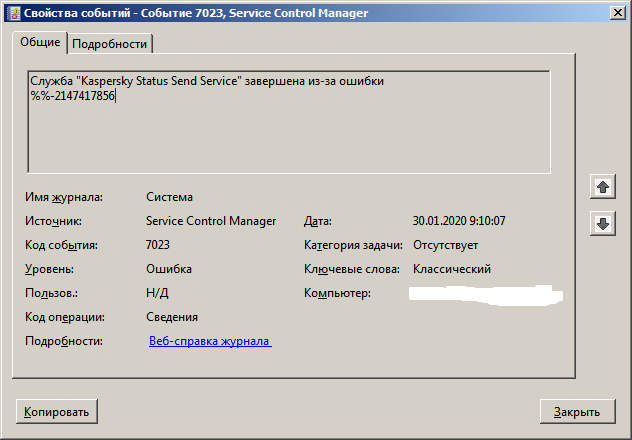 Ошибки Kaspersky Status Send Service - KES10 SP2 MR3