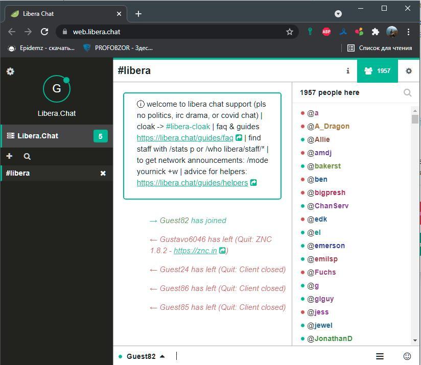 Перестал пусктаь в IRC-чат irc.libera.chat