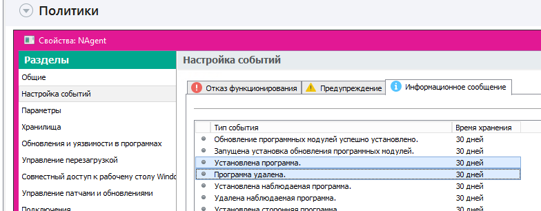 повторяющее Событие: "Удалена программа" и "Установлена программа"