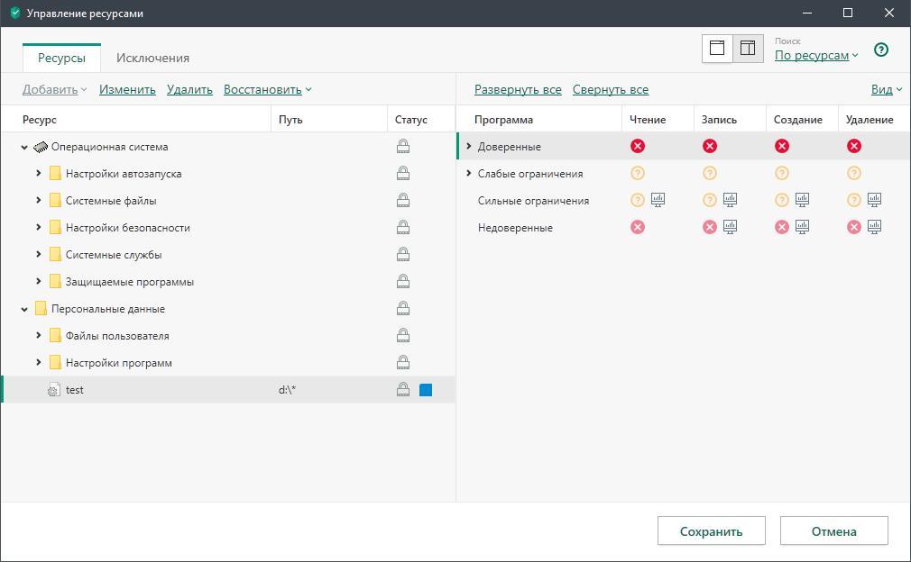 У меня несколько месяцев была настроена защита содержимого определенных папок (точнее монтируемых дисков) и все работало. (Защита → Управление ресурсами → Персональные данные) → .... То есть я сделал кастомные правила, чтобы к файлам имели доступ только определенные программы, и все работало.