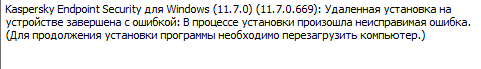 Установка KES 11.7.0 ошибка. (Checkpoint VPN)