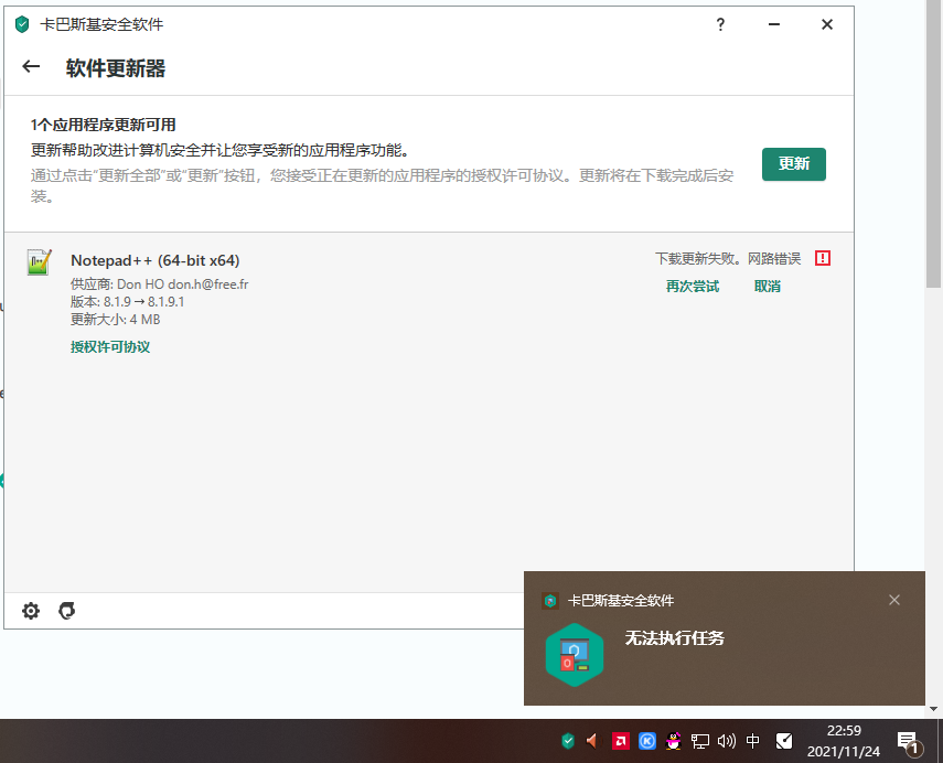 在卡巴斯基更新软件需要挂梯子?为什么总是失败呢?还有最近电脑好卡