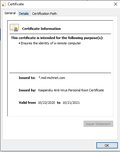 Added new certificate to IIS server but Kaspersky changed the cert and said it was issue by Kaspersky