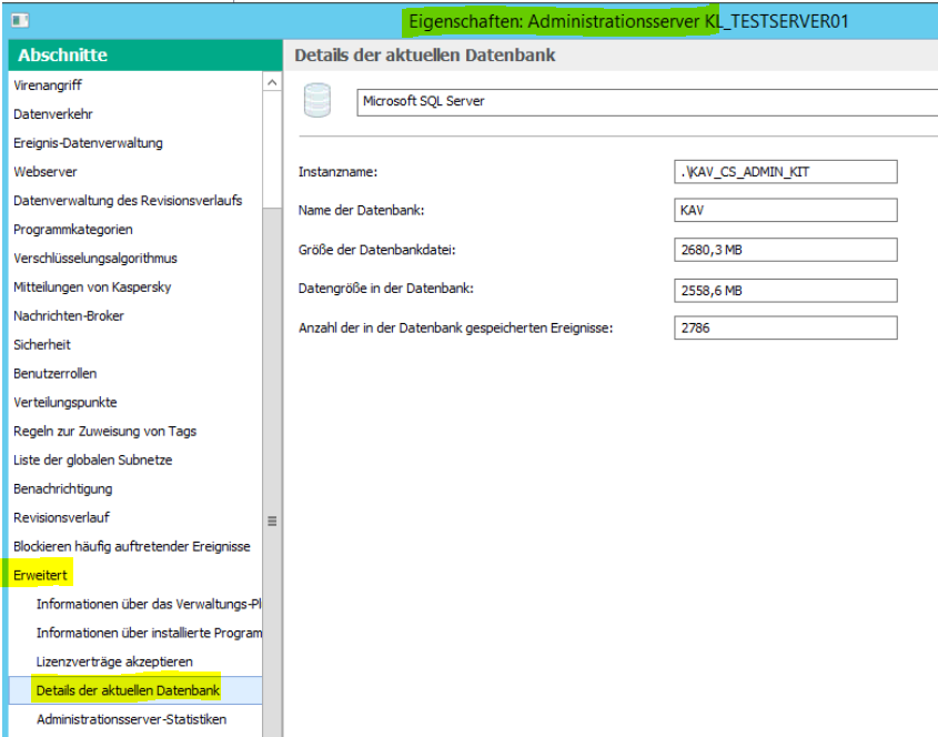 es handelt sich um eine lokale DB-Installation. Wir verwenden MSSQL 2014 12.0.4100.1 und KSC 12.2.0.4376.