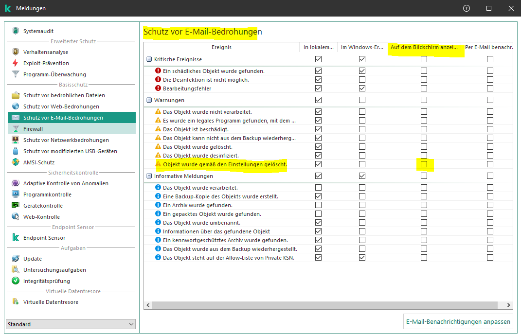 Anlagenfilterung Email - Info über gelöschte Anlagen?