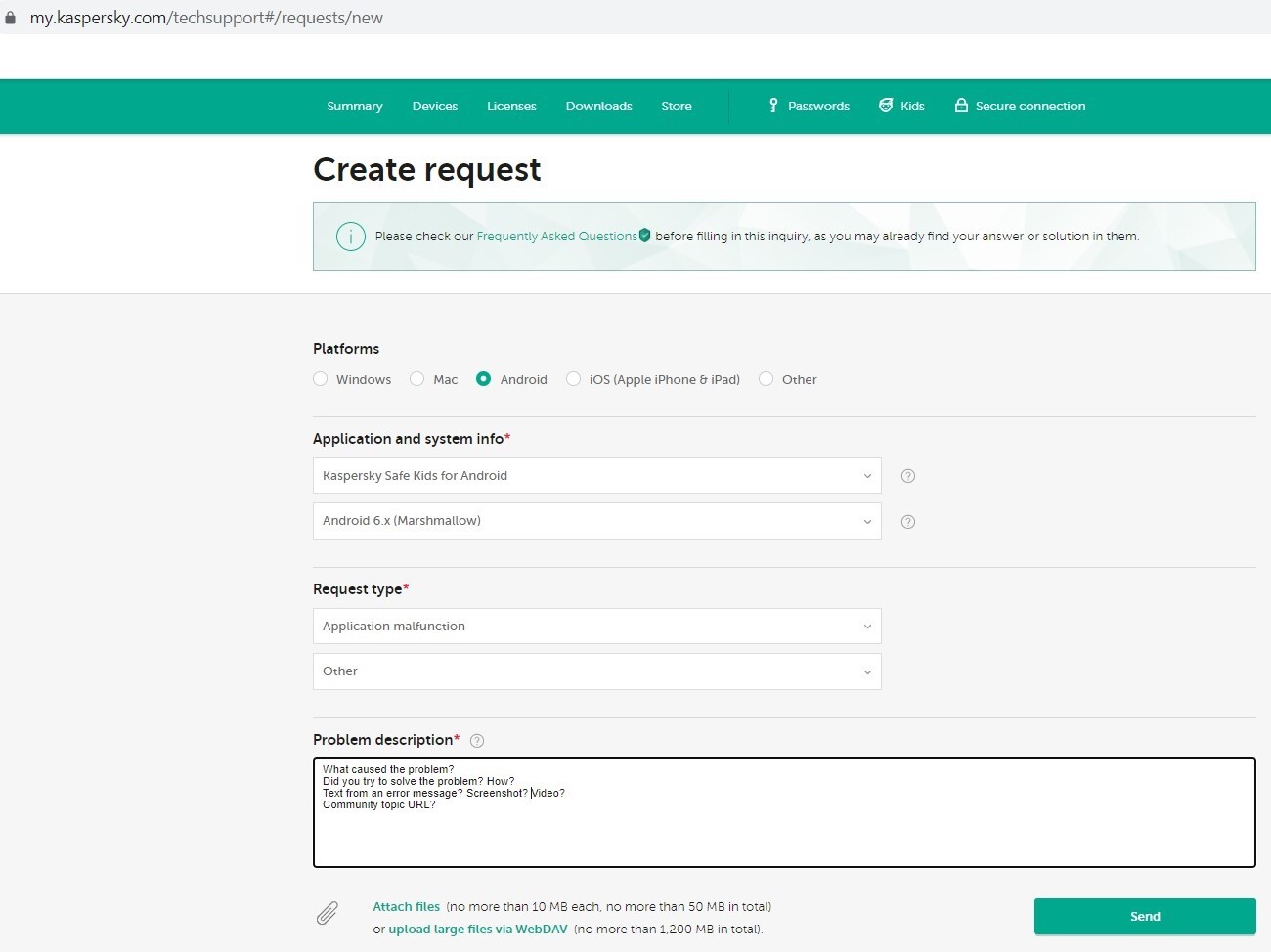 2. Log a case with Kaspersky Technical Support, fill in Application malfunction, Other template; Support may request Logs & other data, they will guide you: