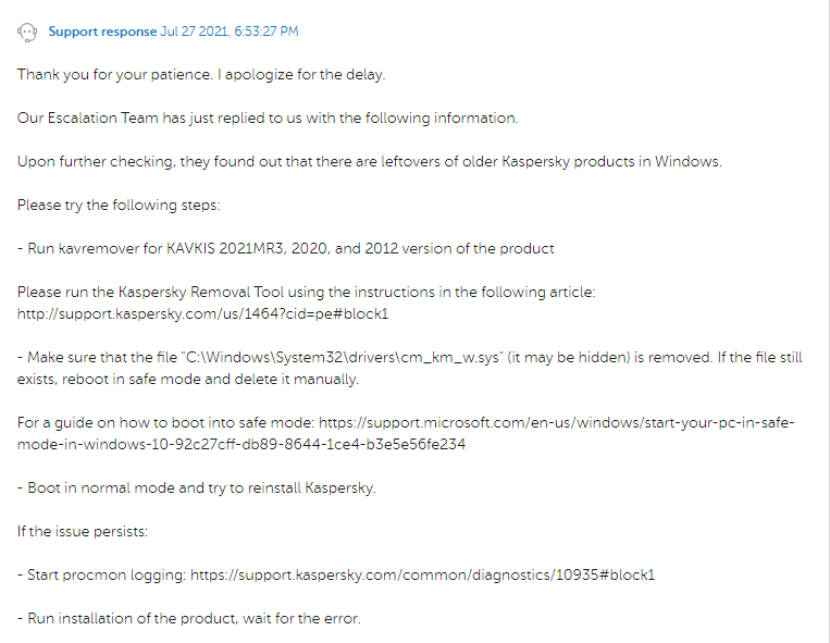 Application installation error(kaspesky internet security)